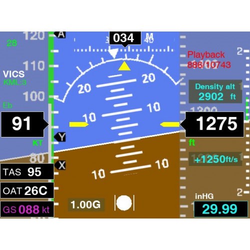 ✔️ V-speed vertical reference strip provides speed warnings at all times during the flight based on V-speeds pre-defined by user.